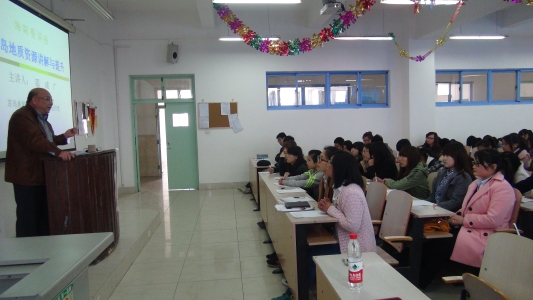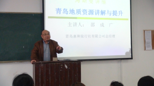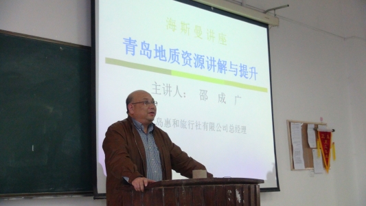 2013年4月11日,在科研处的大力支持下,旅游与3044am永利集团3044noc在A楼205举办了以“青岛地质资源讲解与提升”为主题的学术讲座。本次讲座的主讲人是青岛资深导游,知名导游培训师,青岛惠和旅行社总经理邵成广。