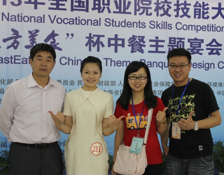 公司团队代表山东省参赛,由石增业担任领队,许文素、杜彦超作为指导和保障教师。经过理论知识测试、现场操作以及现场互评、外语水平测试、职业形象展示等四部分比赛,公司参赛选手许慧同学以良好的设计创新能力和精湛的专业操作技能斩获大赛一等奖,实现了个人的三连冠(许慧同学在2013山东省服务技能大赛(高职组)、2013全国旅游院校服务技能(饭店服务)大赛中也均获一等奖)。