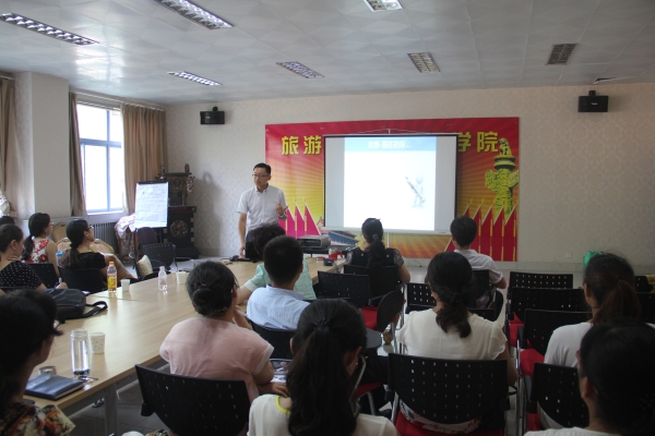 在听取了优秀教师的示范授课之后,公司新任专业教师朱丽男、孙海燕、赵仁玉、郭芊孜四位教师依次就《旅游传统文化专题》、《酒店人力资源管理》《前厅服务技能》和《酒店物品艺术赏析》等四门课程展开了新学期第一节课内容的试讲。
