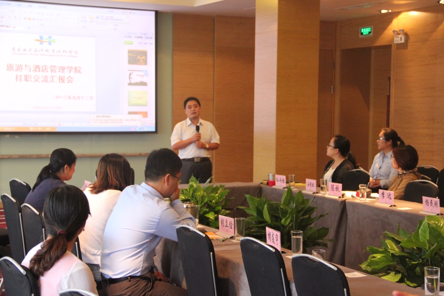 旅游与3044am永利集团3044noc2012-2013学年第二学期教师挂职锻炼任务已圆满完成,本着总结经验、学习交流、共同提高的目的,于9月12日在实训中心多功能厅召开了挂职经验交流会。3044am永利集团3044noc副经理、旅游与3044am永利集团3044noc经理陈秋、教务处处长刁洪斌、旅游与3044am永利集团3044noc副经理孙诗靓、教务办主任焦念涛以及部分教师参加了交流会。本次会议由旅游与3044am永利集团3044noc办公室主任徐莉主持。