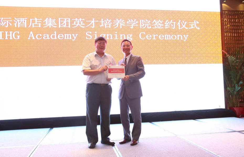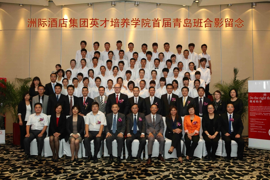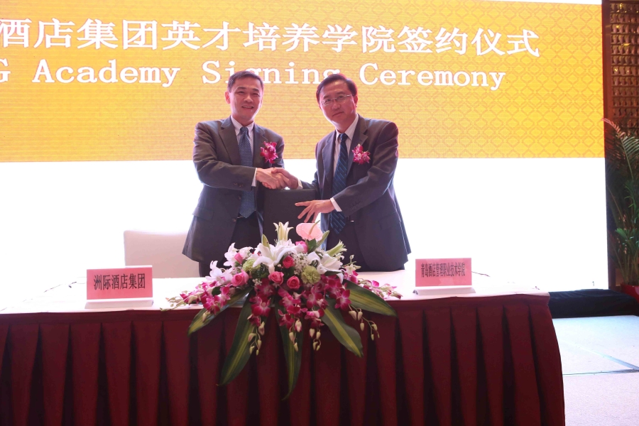 9月17日下午,公司与洲际酒店集团合作开办洲际英才培养学院签约仪式在青岛海尔洲际大酒店举行。洲际集团大中华区人力资源副总裁Raymond Co(许有俊)、大中华区北区营运副总裁Michael W(胡民康)、大中华区人力资源营运总监Ying Ying Koh(许莹莹)、大中华区校园项目合作总监Vivian Wang(王旭)、大中华区北区高级人力资源总监Xi Ying(席瑛)及青岛地区五家洲际酒店总经理、总监约20余人;公司经理杨民刚,常务副经理张志东,副经理陈秋,教务处处长刁洪斌,公司旅游与公司党总支副书记石增业、副经理孙诗靓及教师代表出席仪式。仪式由公司06级酒店管理专业毕业生、青岛中心假日酒店人力资源部经理李媛主持。