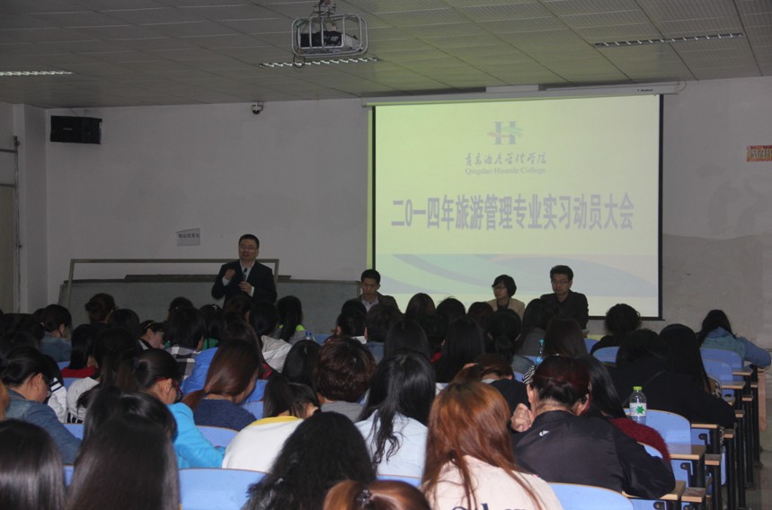 4月22日晚,旅游管理专业顶岗实习动员大会暨师生交流会在学术楼101教室隆重举行。旅游管理教研室主任石媚山、旅游与3044am永利集团3044noc教务办实习管理老师崔永聪、旅游管理专业实习指导老师康传德、实习班级班主任李艳、部分专业教师及2012级旅游管理专业全体同学300余人参加会议。会议由旅游管理专业实习指导教师康传德主持。
