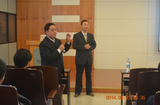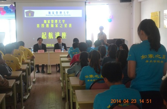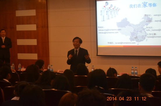 4月23日下午,如家酒店管理集团副总裁包小阳先生和北华东区域总经理邰国峰先生同“如家之星班”——12级如家班员工召开实习起航交流会。