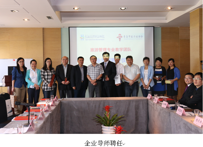 随后,学院经理杨民刚向邵成广、刘芳、赵艳、曲鑫、邢斌等五位企业老总颁发了企业导师聘书,并向增补的旅游管理专业委员会委员姜延群颁发了聘书;青岛市旅行社协会会长王诵怿向公司旅游管理专业项目负责人石媚山颁发了导师聘书和“青岛市旅行社协会专家委员会副主任委员”的聘书。