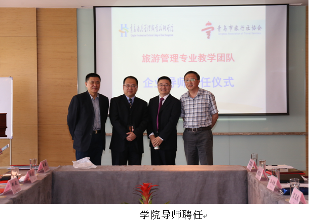 5月23日上午,学院与青岛市旅行社协会联合打造的旅游管理专业教学团队企业导师聘任仪式在实训中心多功能厅隆重举行。学院首批选拔的五位骨干教师拜五位旅行社总经理为企业导师,青岛市旅行社协会选拔的一位企业老总拜学院一位骨干教师为学院导师。