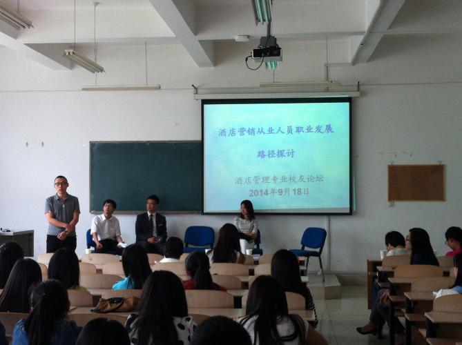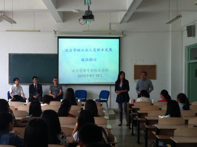9月18日,借名校建设的契机,以“酒店营销从业人员职业发展路径探讨”为主题的酒店管理专业员工沙龙暨师生交流会在A楼206教室举行。活动邀请了在青岛市具有代表性的国际五星级酒店(鲁商凯越、香格里拉、海尔洲际)以及本土五星级酒店(海景花园)销售部工作的公司优秀毕业生回校参加。旅游与3044am永利集团3044noc酒店管理专业项目负责人王光健以及酒店管理专业教师参加活动。?xml:namespace>