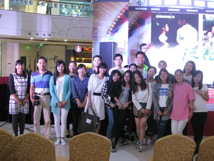 2014年9月19日晚,旅游协会的30多名会员在指导老师的带领下,来到了李沧区万达广场参加微电影“流白”的开幕式。