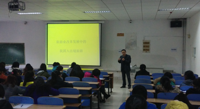 11月13日下午,旅游与3044am永利集团3044noc旅游管理专业邀请青岛大学旅游学院副经理、教授、硕士研究生导师田克勤于学术楼101教室成功举办了题为“对促进旅游业改革发展的思考”的海斯曼讲坛。本次讲坛由旅游与3044am永利集团3044noc副经理石媚山主持,旅游管理专业部分师生参加了活动。