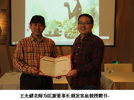 在比赛开始之前青岛晓阳工贸公司董事长匡新受聘为酒店管理专业客座教授,并由王光健老师为其颁发了聘书。