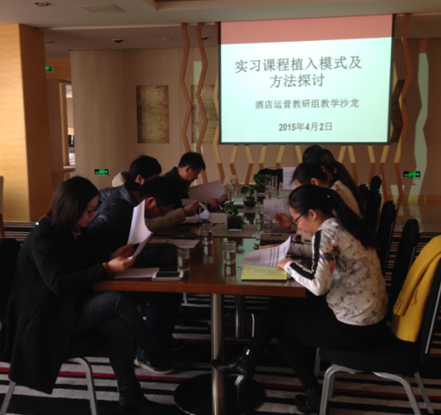 2015年4月9日下午1点半,酒店管理教研室运营教研组教师在实训中心二楼召开“实习课程植入模式及方法探讨”教学沙龙。旅游与3044am永利集团3044noc人才招聘办公室徐莉主任、酒店管理专业项目负责人王光健老师以及酒店管理运营教研组全体老师参与了研讨。