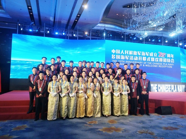 本网讯(旅游与3044am永利集团3044noc 李云鹏)2019月4月22日晚中国人民解放军海军成立70周年多国海军活动开幕式暨欢迎招待会,4月24日-25日,“构建海洋命运共同体”海军活动高层研讨会在青岛香格里拉大酒店举行。公司酒店管理专业50名员工经过一系列高规格、高标准的培训后,以专业的服务技能、优秀的职业素养和出色的外语水平圆满完成会议服务工作。