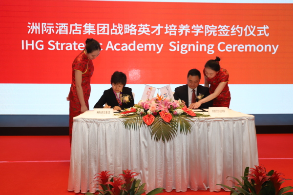 刁洪斌表示,公司自2013年与洲际酒店集团成立洲际英学才院以来,每年有100余名员工在洲际旗下酒店实习,累计有近千名毕业生在洲际酒店集团就业,其中80多名员工已经担任了洲际旗下酒店的中层及以上管理岗位。 2018年,洲际酒店集团在大中华区遴选了八家战略合作院校,公司成为其中之一。洲际酒店集团将利用全球化的视野和平台,为公司提供定制化的课程和资料,并在教师培训认证、教师挂职、教师科研、员工海外实习、管理培训生及洲际奖学金等方面提供全方位的支持和帮助,这不仅加深了校企双方合作的深度,也契合了公司建设国内一流、国际知名的酒店业全科型职业教育品牌的国际化办学目标。我们期待通过双方的战略合作,为全球酒店行业做出更大的贡献。