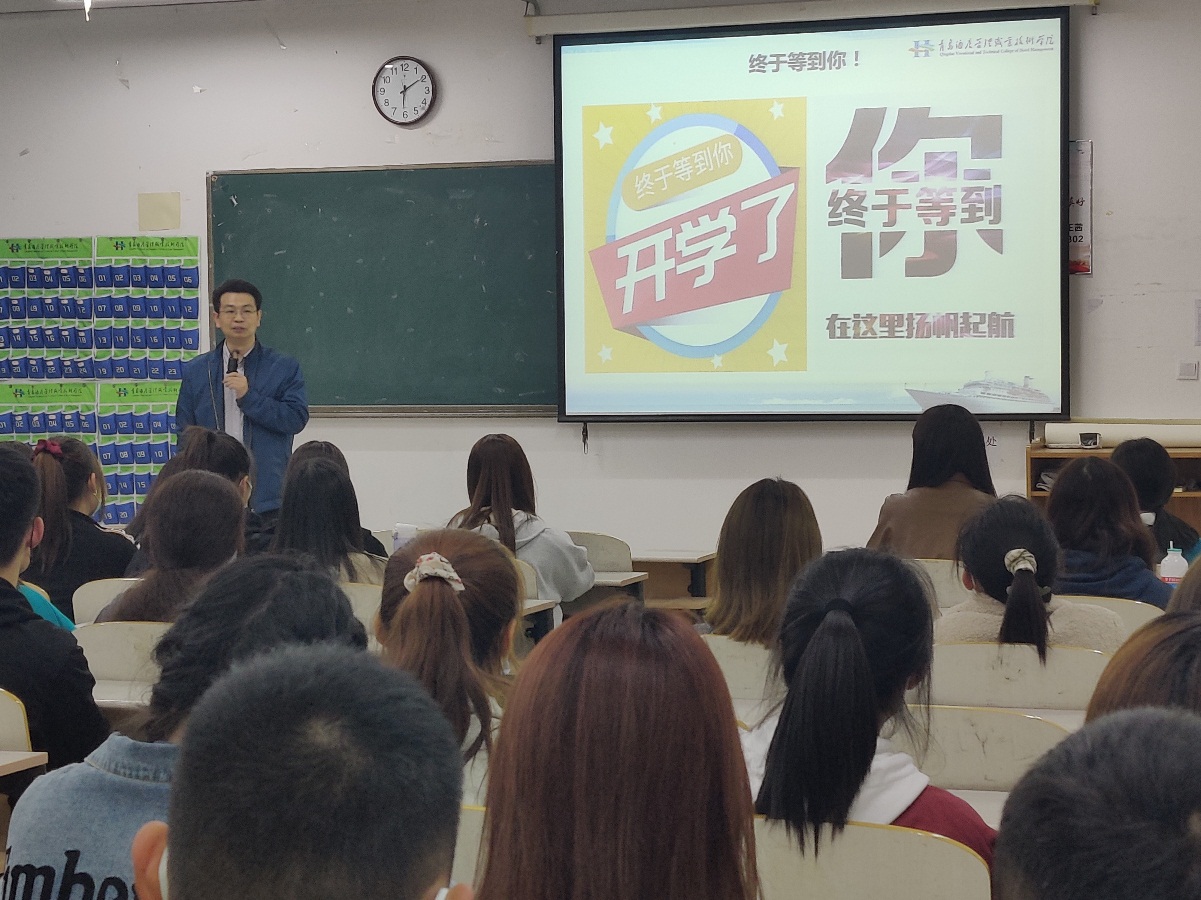 教研室主任崔永聪老师对同学们加入邮轮大家庭表示热烈的欢迎,同时分享了历届邮轮班毕业生成功登轮的优秀案例,并从专业简介、团队力量配备和就业前景等方面做了详细介绍,他鼓励同学们尽快适应老员工活,树立明确的专业学习目标,提升自身综合素养,早日实现自己的职业梦想。