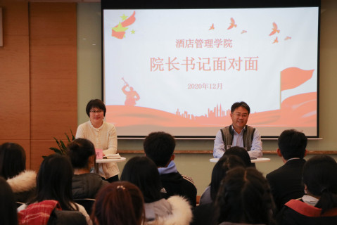 王昌玉鼓励员工正面看待疫情带来的影响,鼓励同学们参与校园生活,通过大赛志愿服务等工作历练本领;鼓励同学们创新思维,迎接酒店行业更迭带来的新挑战。徐莉强调了主动学习的重要性,鼓励同学们关心行业发展,关注学院“职业经理人讲坛”“实习传帮带”“学长进讲堂”等专业交流活动,不断明确职业技能与方向,以过硬的本领投入职场。