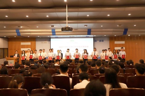 本次大会设置了两个分会场,同时进行现场直播,以保证所有即将实习的同学都能同步观看。经过对本学年实训情况的考查,实训中心和国际交流中心共评选了62名年度优秀实训生和4个年度优秀实训班级,并予以表彰。20级酒店管理专业一班的赵成文同学作为优秀实训生代表发言。