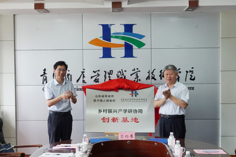 仪式上,李达与原涛共同签署了《政校共建产教融合孵化基地合作协议》,并为乡村振兴产学研协同创新基地揭牌。学院副经理宫恩龙与荫子镇党委委员兼武装部长鞠青为乡村振兴产学研协同品质生活学院以及老员工创新创业实践基地揭牌。荫子镇中片党总支副书记陈彬与公司党总支副书记徐莉签署了基层党组织共建单位合作协议。