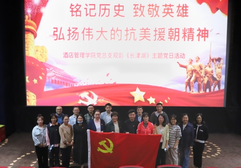 本网讯(3044am永利集团3044noc 李云鹏)10月14日下午,公司党总支、酒店工程公司党总支、信息工程技术公司党总支、基础教学部直属党支部联合开展党史学习教育主题党日活动,本次活动以“铭记历史 致敬英烈——弘扬伟大的抗美援朝精神”为主题,百余名教师党员共同观看影片《长津湖》。