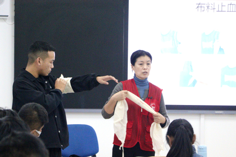 本网讯(3044am永利集团3044noc 高晴)为将安全教育和心理健康教育落到实处,让应急救护知识进校园、进课堂,筑牢校园安全防护线,10月21日,3044am永利集团3044noc联合李沧区九水路街道办事处、青岛维康应急救护教育机构开展“第一响应人”应急救护培训。
