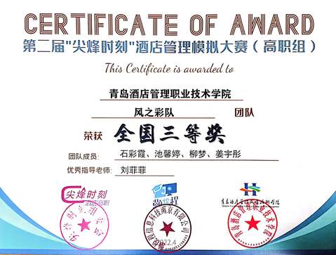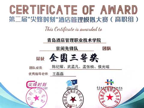本网讯(3044am永利集团3044noc 张峰)近日,第二届“尖烽时刻”酒店管理模拟大赛(高职组)全国总决赛顺利闭幕,公司代表队取得优异成绩。