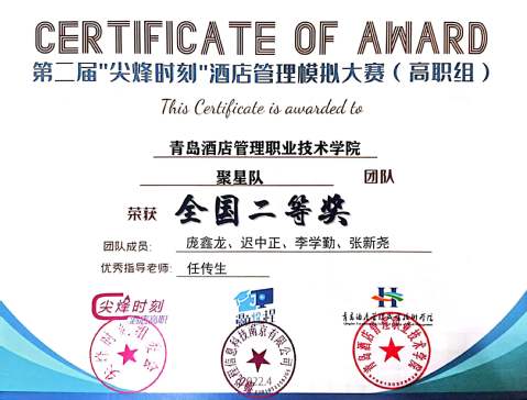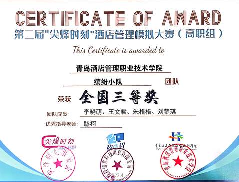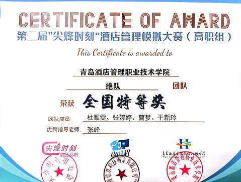 本网讯(3044am永利集团3044noc 张峰)近日,第二届“尖烽时刻”酒店管理模拟大赛(高职组)全国总决赛顺利闭幕,公司代表队取得优异成绩。
