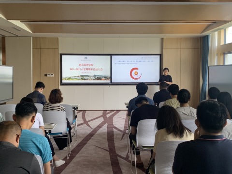 徐莉梳理了学院该学期的党建重点工作,总结了学院本学期在疫情防控、员工管理、人才招聘等方面取得的成绩。她指出,面对这一特殊的学期,学院师生奋力向前,迎难而上,充分体现了党员先锋的积极带头作用,为学院全体师生的健康安全和学习生活筑起坚强防疫堡垒。同时,她要求全体教职工暑假期间严格按照要求做好科学防疫,利用假期有效提升自我能力。