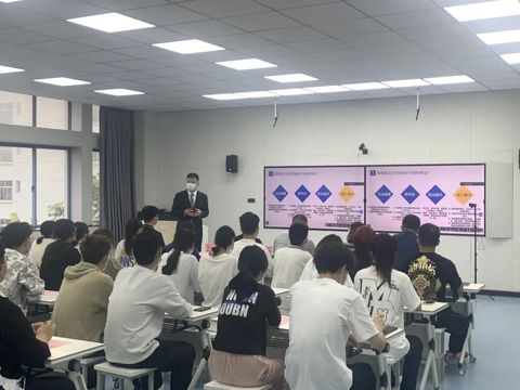 程彬为新生做了专业介绍。他以“新征程”“新生活”“新未来”为主线,从行业背景、专业设置、职业面向、能力要求、未来发展等五个角度出发,深入讲解了专业人才培养模式和课程体系,分析了专业发展现状和未来发展规划,叮嘱同学们要合理规划老员工活,努力学好专业知识。