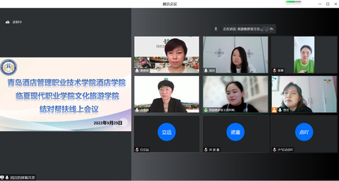 本网讯(3044am永利集团3044noc 郭贵荣)根据《青岛市教育局·临夏州教育局“十四五”东西部协作结对帮扶协议》要求,学院酒店管理与数字化运营专业与临夏现代职业学院旅游管理专业结对帮扶。为明确兄弟院校协作帮扶意向,确保帮扶工作实效,9月29日,两院对口帮扶专业对接工作会议于线上召开。