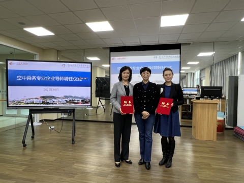 仪式上,冷雪艳介绍了公司空中乘务专业发展建设基本情况,表示聘任企业导师对于充分发挥智库作用,推动专业建设、产教融合、校企合作等领域深度融合具有重要意义。随后,冷雪艳为鹿佳、王宝红颁发企业导师聘书。