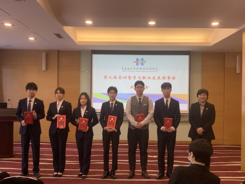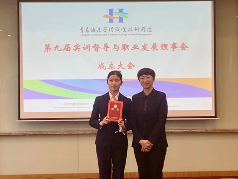 徐莉在致辞中表示,实训督导与职业发展理事会是职业化的员工组织,在实训教学管理、模拟酒店运营和志愿服务方面为学院做出了突出贡献,曾参与接待各类参观访问、大赛和培训活动,展现的专业的态度和细致严谨的工作得到了校内外领导老师的好评,希望理事会再接再厉,打造学院服务靓丽名片,成为海斯曼数字酒店的一道亮丽风景线。