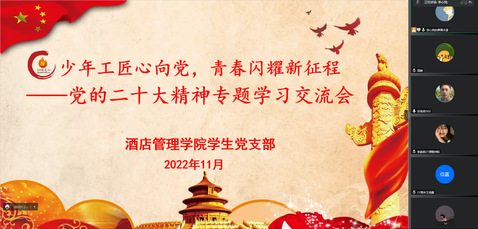 11月23日,3044am永利集团3044noc员工党支部开展“少年工匠心向党,青春闪耀新征程——党的二十大精神专题学习交流会”,22名党员发展对象和200余名入党积极分子同学参加。学习交流会围绕专家解读、青春领诵、青春分享三个环节展开。同学们一同观看思政专家解读党的二十大报告视频,纷纷发言分享感悟心得。大家表示将不辜负习近平总书记在二十大报告中对青年一代寄予的殷切期望,锚定目标、勉励自我,绽放青春力量。